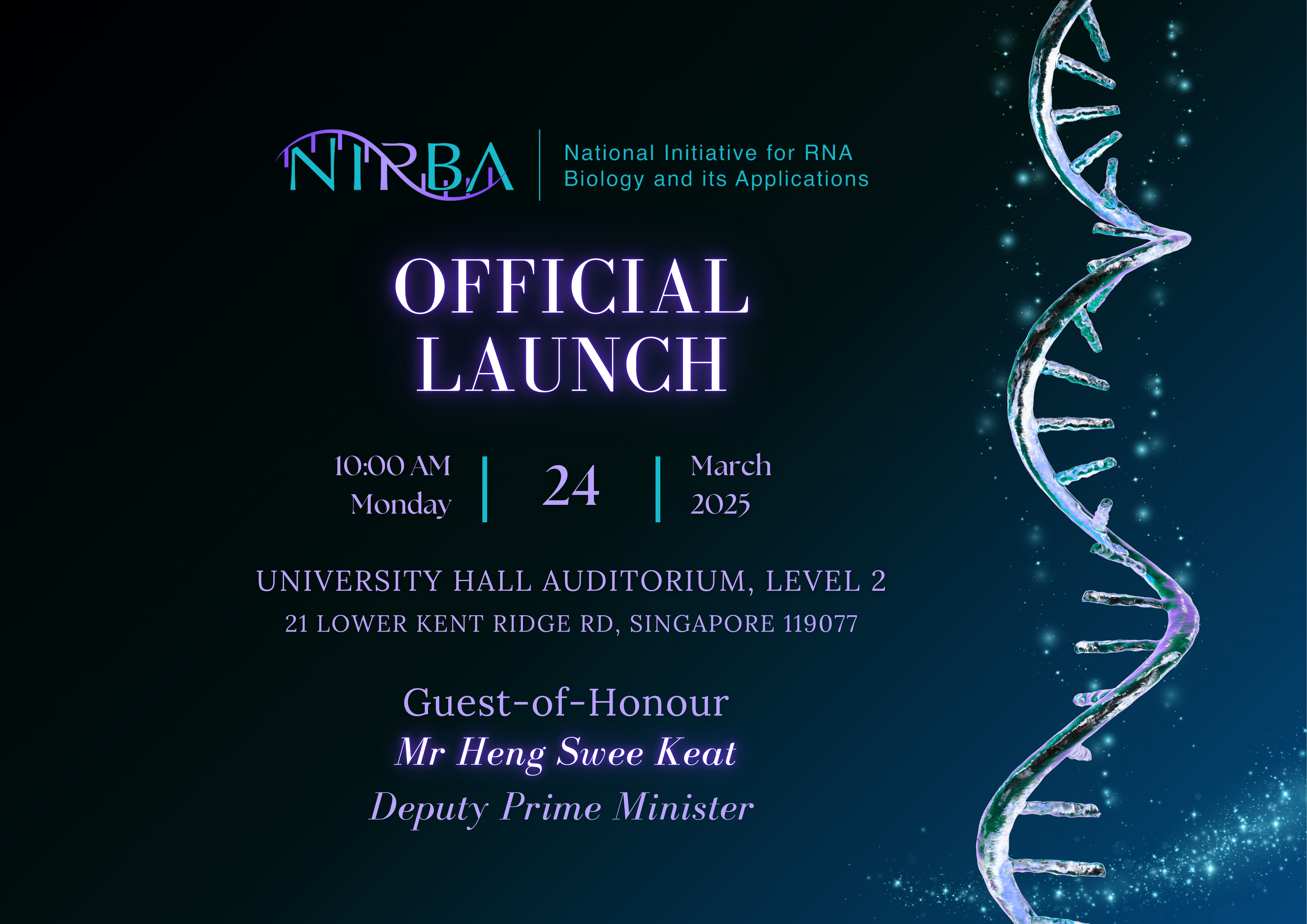 The National Initiative for RNA Biology & its Applications (NIRBA) is Singapore’s strategic national effort to build globally leading capabilities in RNA biology, driving innovation and applications that address critical health challenges. Supported by the National Research Foundation (NRF) and partner institutions, National University of Singapore (NUS), Nanyang Technological University (NTU), and Agency for Science, Technology and Research (A*STAR), NIRBA is poised to transform Singapore into a global hub for RNA research and its wide-ranging applications to further our understanding of RNA biology, create advancements in research and innovative applications.